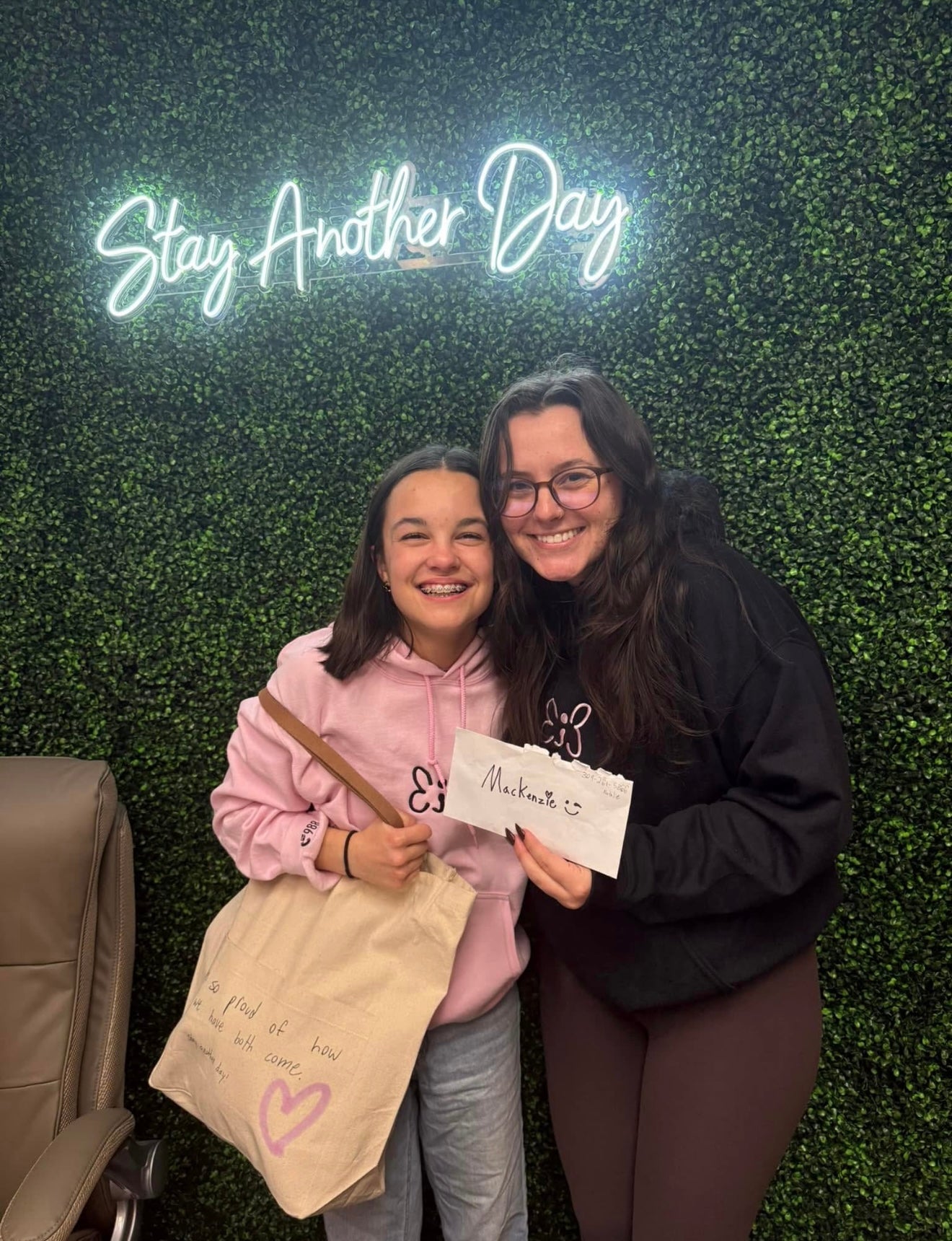 Letter from Natalie: “Stay Another Day has helped me form a positive relationship with my mental health. Getting help was one of the hardest things I had to do, but I am so glad I did. I wrote a letter to Mackenzie explaining how impactful her words are. These sweatshirts represent how proud I am of how far we have both come”