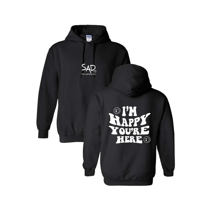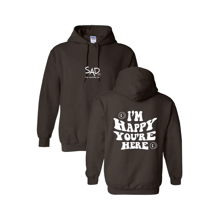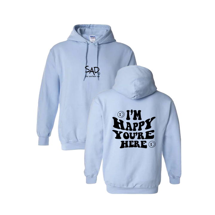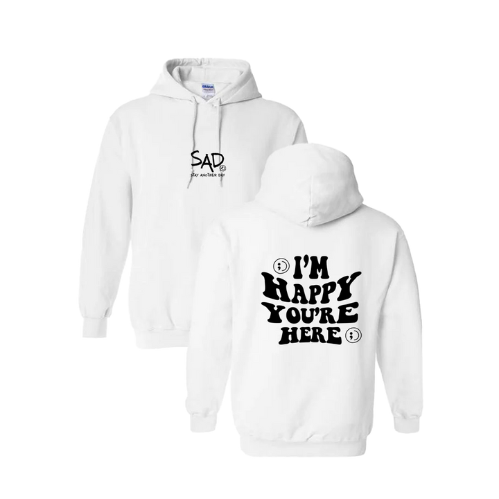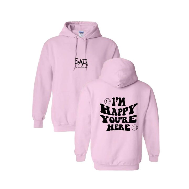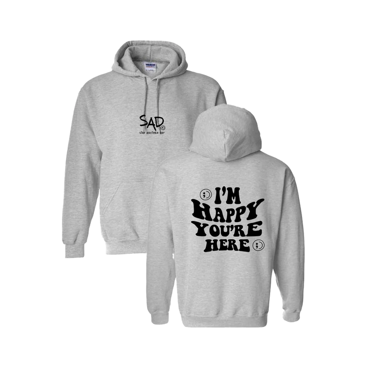 I'm Happy You're Here Screen Printed Hoodie