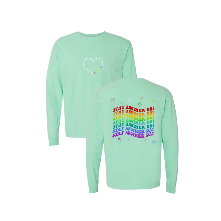 Stay Another Day Layered Rainbow Screen Printed Mint Long Sleeve - Mental Health Awareness Clothing