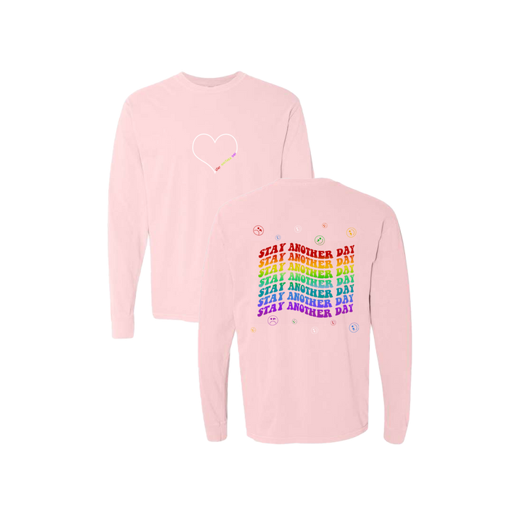 Stay Another Day Layered Rainbow Screen Printed Pink Long Sleeve - Mental Health Awareness Clothing