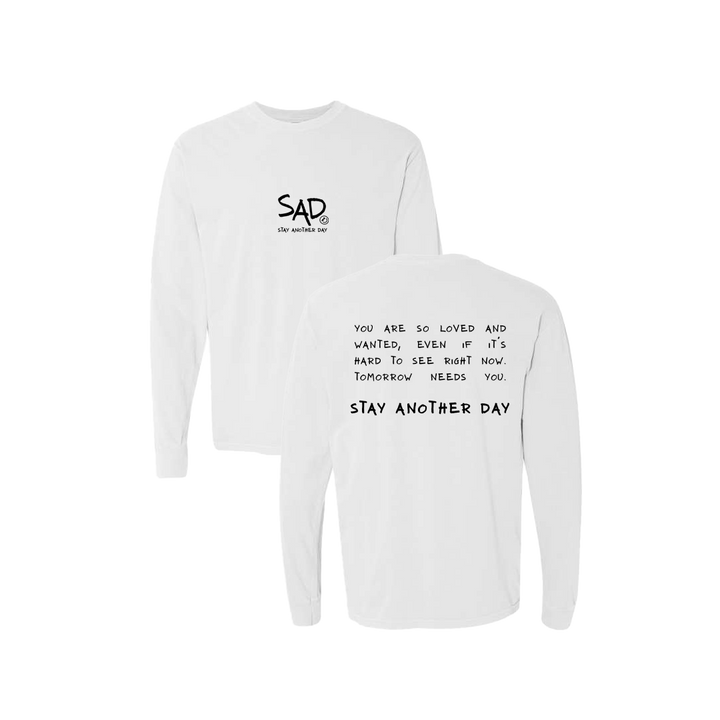 Stay Another Day Message Screen Printed White Long Sleeve - Mental Health Awareness Clothing