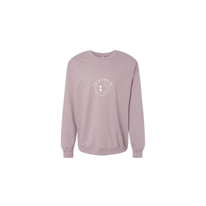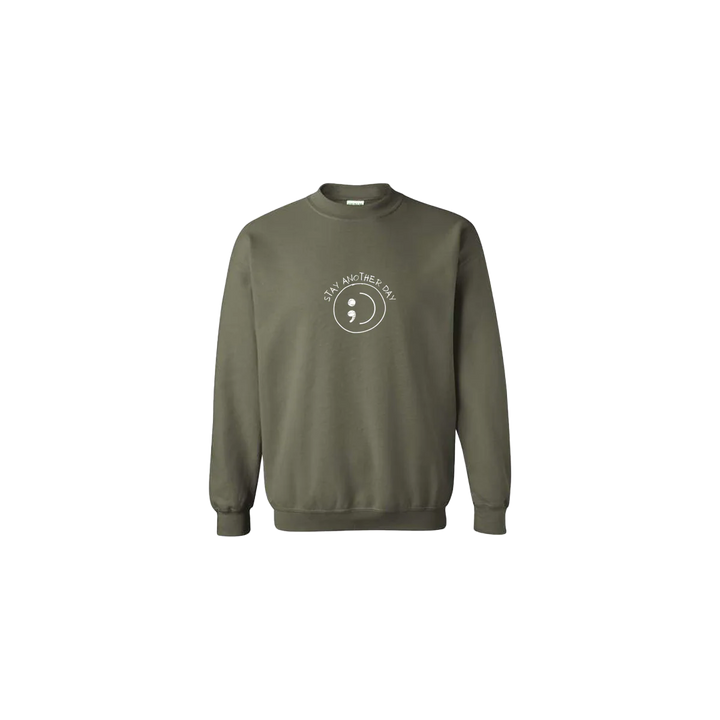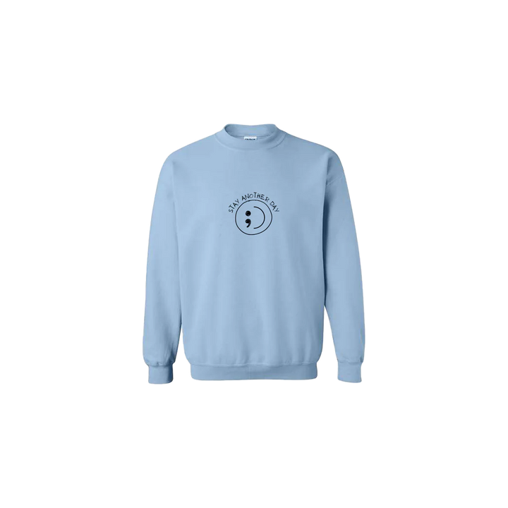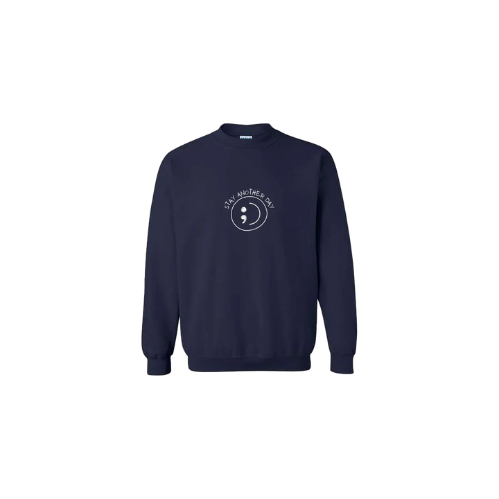 Stay Another Day Smiley Face Embroidered on a Crewneck. This super comfortable Crewneck features the Stay Another Day Smiley Face design, centered on the front chest.