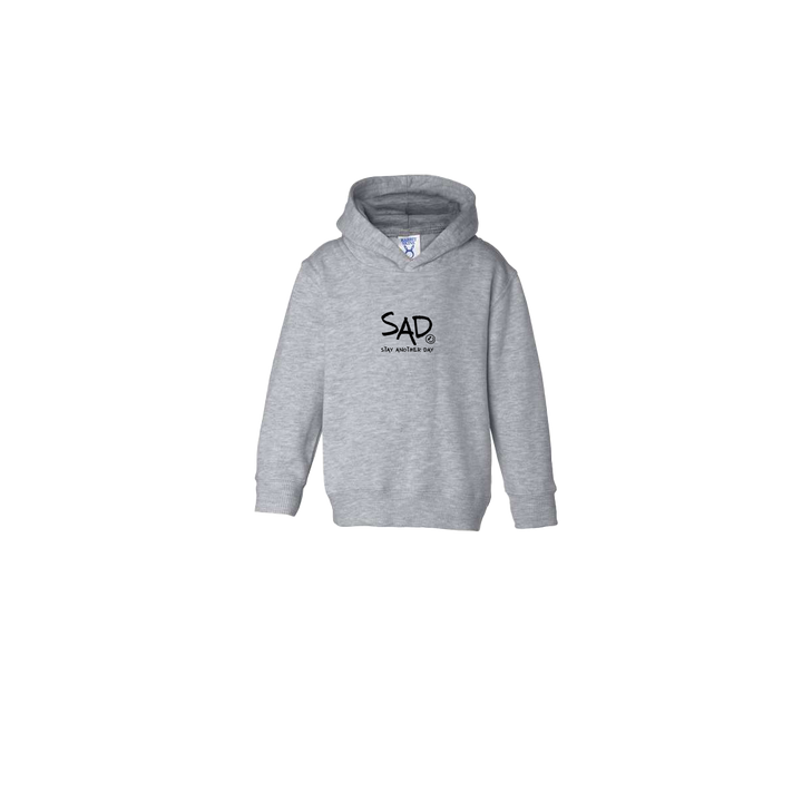 Stay Another Day Logo Heather Grey Toddler Hoodie. This super comfortable Hoodie features the SAD logo on the front with a blank backside.