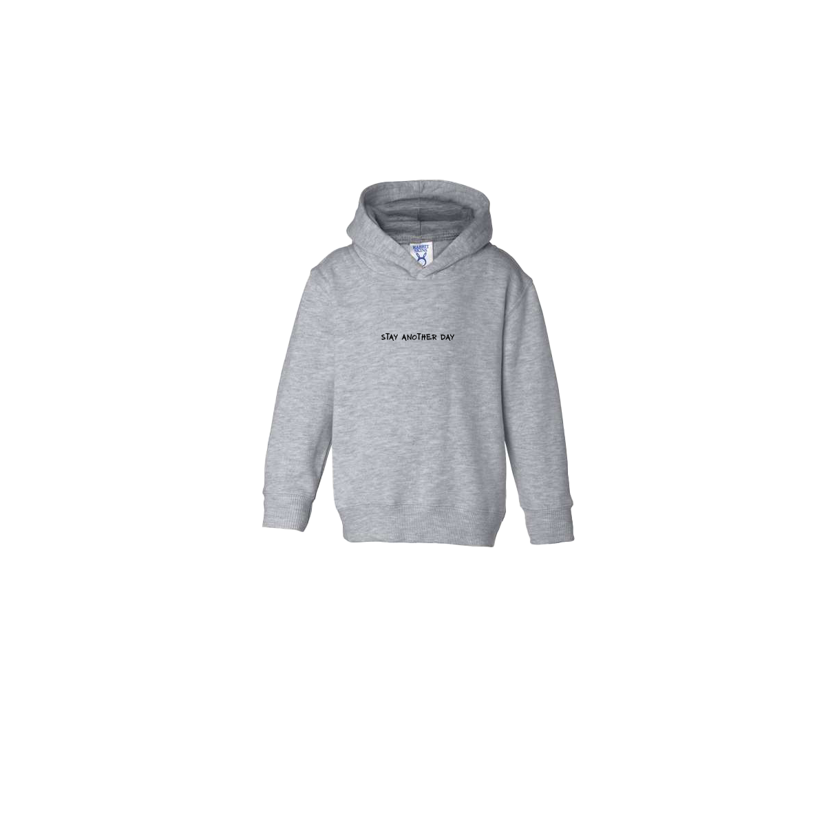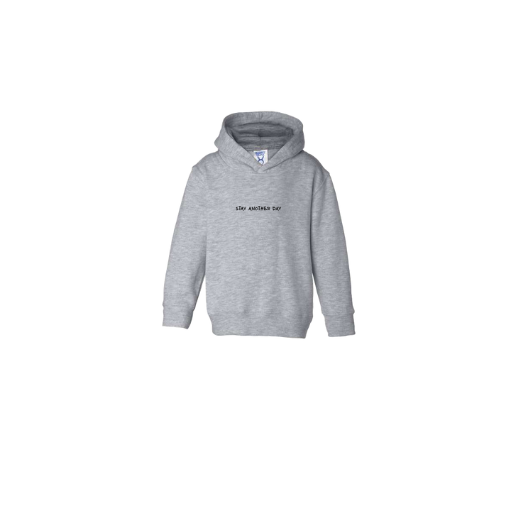 Stay Another Day Text Heather Grey Toddler Hoodie. This super comfortable Hoodie features the SAD Text on the front with a blank backside.