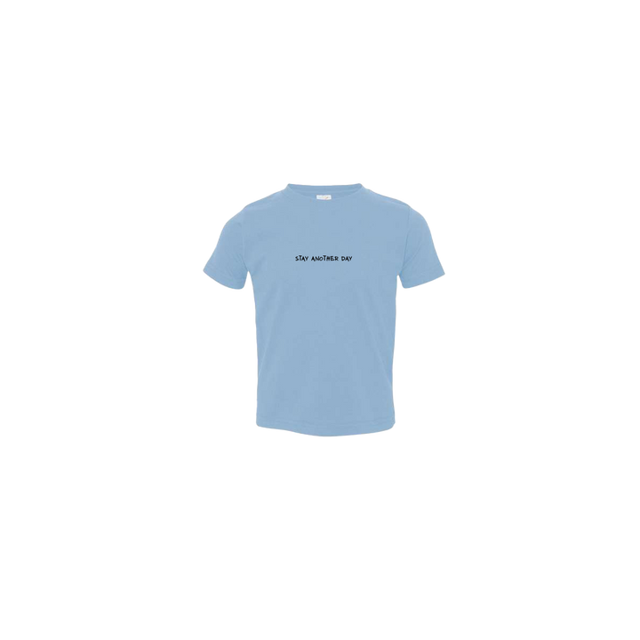 Stay Another Day Text Light Blue Toddler T-Shirt. This super comfortable T-Shirt features the SAD Text on the front with a blank backside.