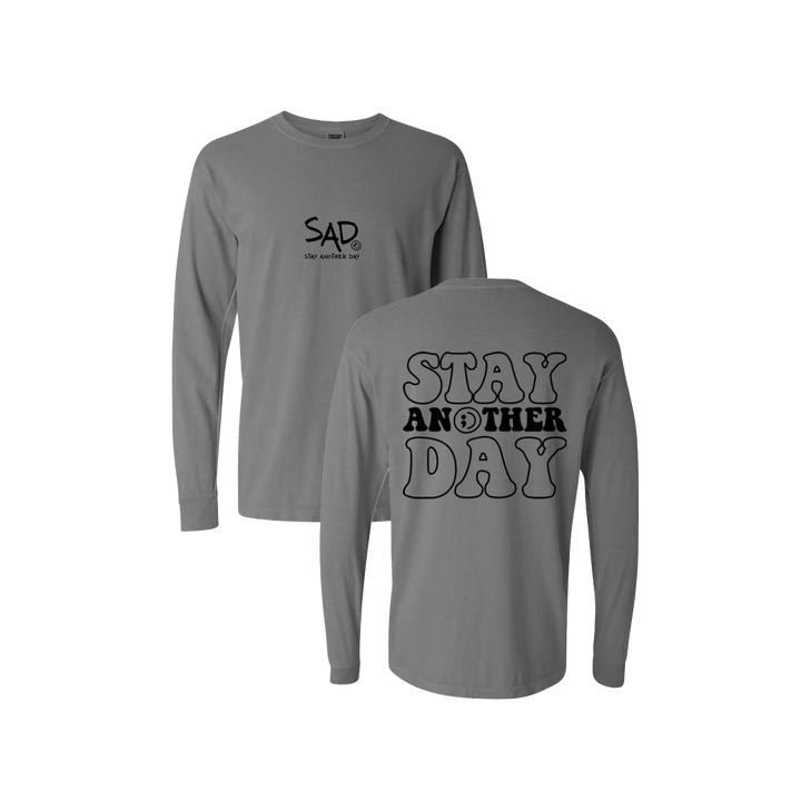 Stay Another Day Bubble Screen Printed Grey Long Sleeve - Mental Health Awareness Clothing