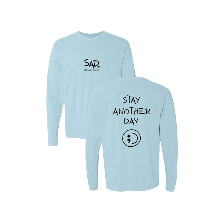 Stay Another Day Screen Printed Blue Long Sleeve - Mental Health Awareness Clothing