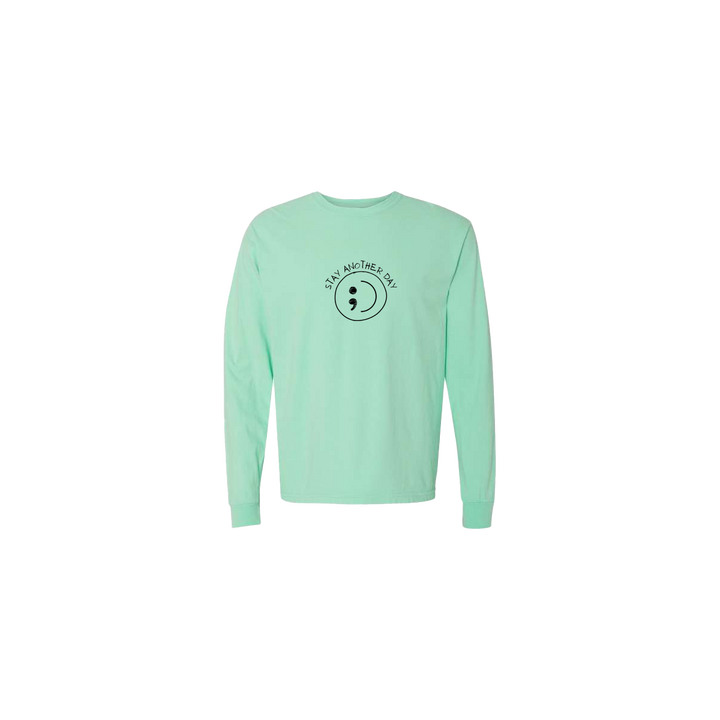 Stay Another Day Smiley Face Embroidered Mint Long Sleeve Tshirt - Mental Health Awareness Clothing